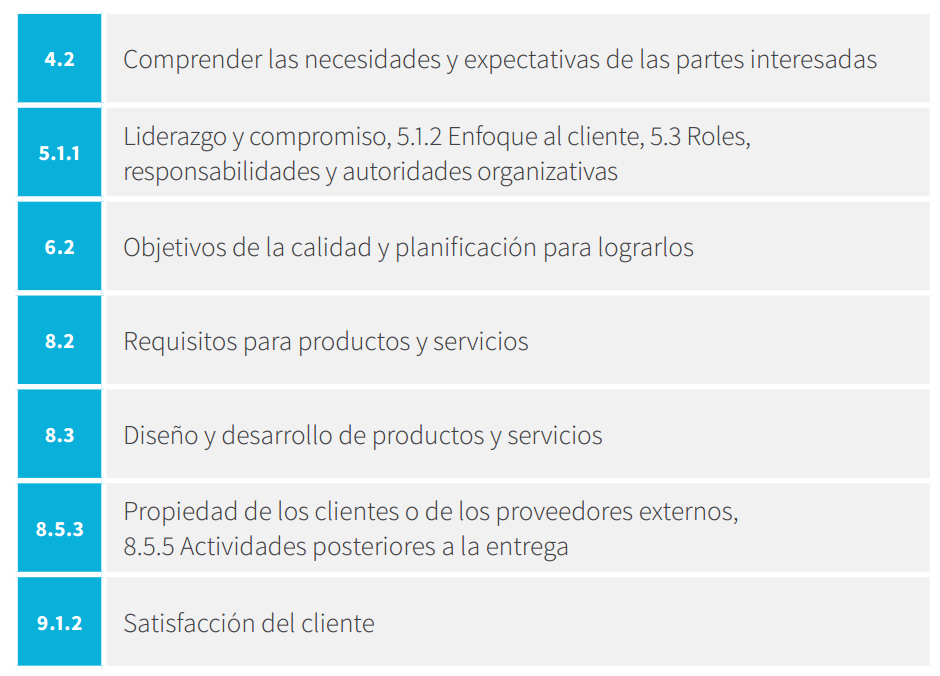 los requisitos ISO 9001:2015 relacionados con este principio son los siguientes:
